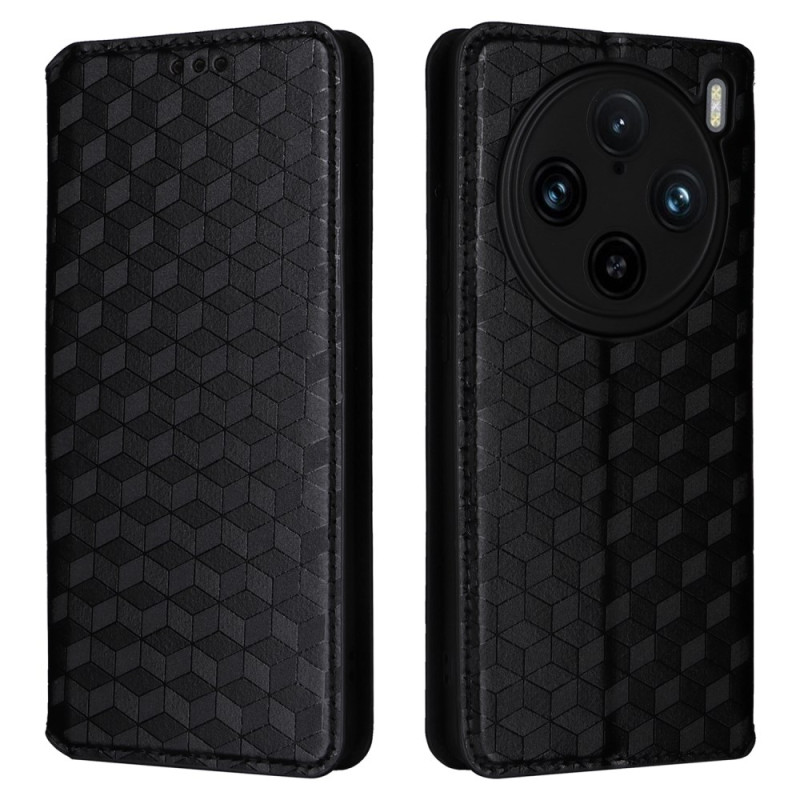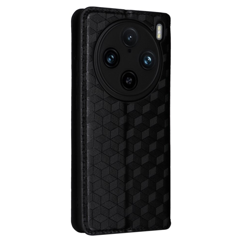 Capa elegante com fecho magnético para o vivo X100 Pro 5G. Design sofisticado com relevo 3D, função mãos-livres e armazenamento prático para cartões e dinheiro. Proteção total de 360° contra choques e riscos.