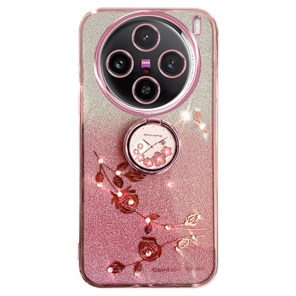 Proteja o seu Vivo X100 Pro 5G com estilo com esta capa cintilante adornada com flores eternas e strass. O seu anel rotativo integrado permite uma visualização em mãos livres e uma aderência segura para uma utilização quotidiana óptima.