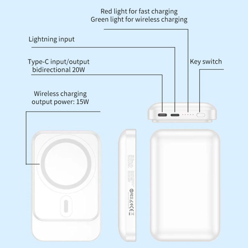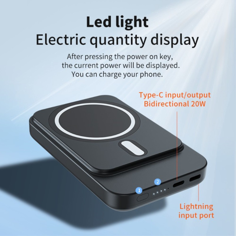 Combine desempenho e praticidade com esta bateria externa magnética de 10000mAh. Com carregamento rápido sem fios até 15 W, fixa-se de forma segura à parte de trás dos telemóveis compatíveis.