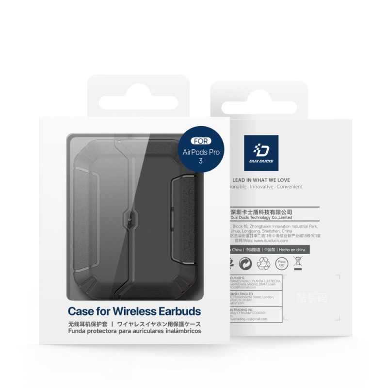 Descubra a capa DUX DUCIS PECS para os AirPods Pro 3: proteção total de camada dupla, suporte multi-posições integrado para um conforto mãos-livres, acabamento mate anti-riscos e gancho em liga leve para um transporte prático. Design inovador inspirado na natureza.
