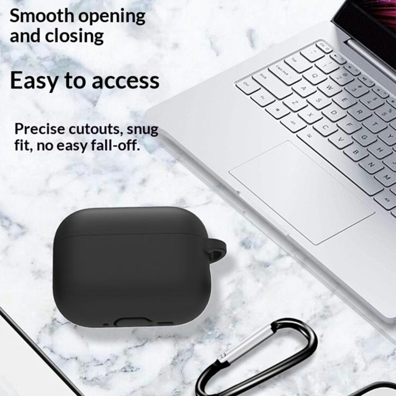 Kit completo de 8 acessórios para proteger e otimizar os AirPods Pro 3. Inclui capa de silicone com gancho, correia anti-perda, presilha para relógio, ganchos para as orelhas, correia de pulso, escova de limpeza e capa de armazenamento.