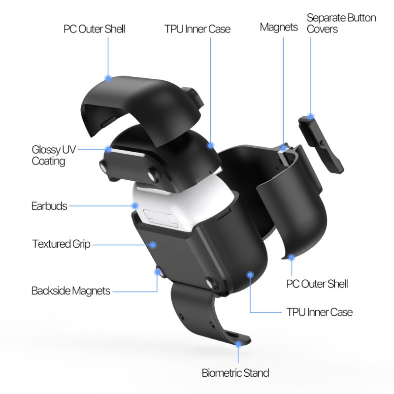 Proteja os seus AirPods Pro 3 com esta capa inovadora que inclui um suporte multi-ângulo para visualização em mãos-livres. Design inspirado na natureza com fecho magnético automático e gancho compacto para um transporte fácil.