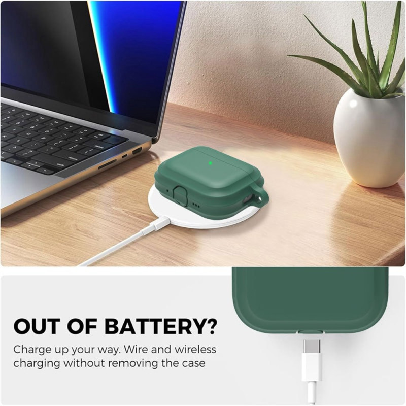 Proteja os seus AirPods Pro 3 com esta capa de silicone de qualidade superior que é suave e confortável. Compatível com carregamento com e sem fios, oferece proteção total contra choques e riscos. Inclui um mosquetão amovível para um transporte fácil e seguro.