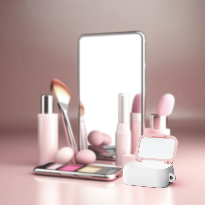 Proteja os seus AirPods Pro 3 com estilo com esta inovadora capa multifunções. Combina uma proteção eficaz contra choques, um prático espelho de maquilhagem e um suporte dobrável para telemóvel. O seu design em material resistente oferece uma proteção completa contra quedas e riscos, mantendo-se ao mesmo tempo elegante e portátil.