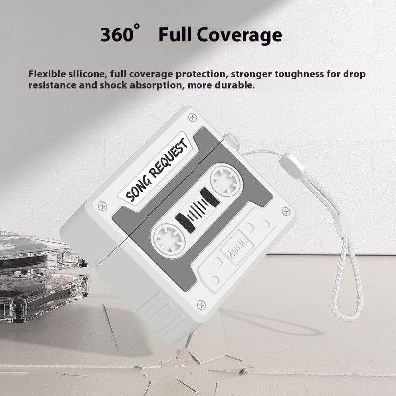 Proteja os seus AirPods Pro 3 com estilo com esta capa de silicone com um design retro inspirado nas cassetes vintage. Oferecendo uma proteção completa de 360°, combina nostalgia e funcionalidade com o seu design em relevo 3D e a prática correia anti-perda.