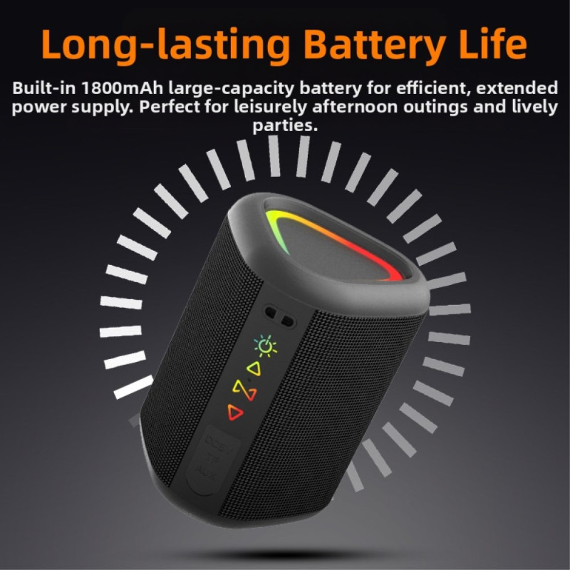 Descubra o altifalante portátil CYBORIS S1 com Bluetooth 5.3, som potente de 15 W e certificação IPX6 à prova de água. Desfrute da iluminação RGB dinâmica para combinar com a sua música, da autonomia da bateria de até 8 horas e das múltiplas opções de conetividade (Bluetooth, AUX, cartão TF, TWS). Compacta e leve, vai consigo para todo o lado para momentos musicais inesquecíveis.