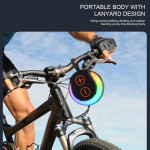 Descubra este altifalante Bluetooth portátil com um design circular elegante, iluminação RGB ambiente e tecnologia TWS para um som surround de 360°. Perfeito para os seus passeios ao ar livre e para o seu escritório, oferece uma experiência de áudio envolvente com graves potentes e uma bateria de longa duração.