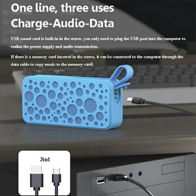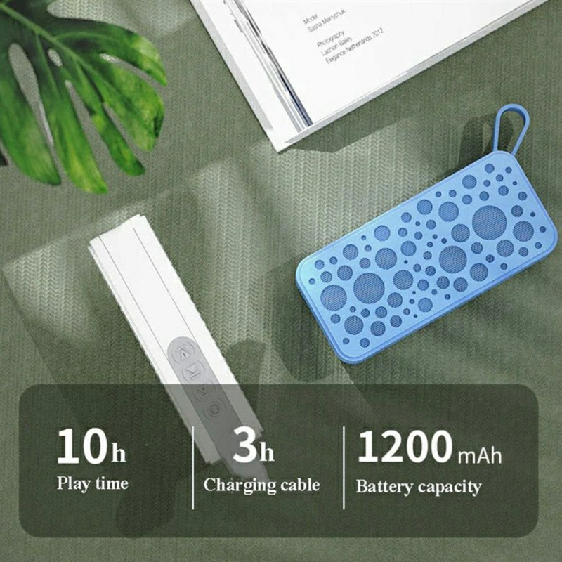 - Bateria de longa duração: Equipado com uma bateria de 1200mAh, este altifalante proporciona 8-10 horas de reprodução contínua a um volume médio. Ideal para sessões de audição prolongadas sem recarga constante, carrega totalmente em 2-3 horas.