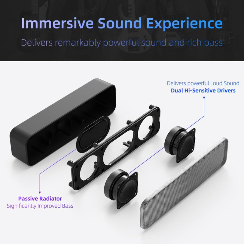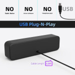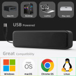 Esta barra de som USB proporciona um áudio potente graças a dois controladores de 40 mm, cada um com 3 W, complementados por um radiador passivo para aumentar os graves. O seu tamanho compacto facilita a instalação numa secretária sem ocupar muito espaço, ao mesmo tempo que melhora significativamente a experiência de som para música, filmes ou chamadas de videoconferência. A fonte de alimentação USB assegura uma instalação imediata sem controladores ou uma fonte de alimentação externa. O seu design elegante em preto integra-se harmoniosamente em qualquer espaço de trabalho ou interior moderno.