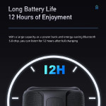 Este altifalante Bluetooth V5.0 proporciona uma ligação estável e de baixa interferência para uma transmissão de áudio nítida com smartphones e computadores. A sua função TWS permite-lhe combinar dois altifalantes para criar uma experiência estéreo verdadeiramente envolvente. O microfone incorporado permite efetuar chamadas em modo mãos-livres com uma qualidade de voz nítida. Concebida para utilização no exterior, possui proteção IPX6, ideal para actividades como ciclismo, passeios na praia ou festas ao ar livre. A sua bateria de 2200 mAh proporciona até doze horas de audição e os seus vários modos de reprodução adaptam-se a todas as situações.
