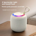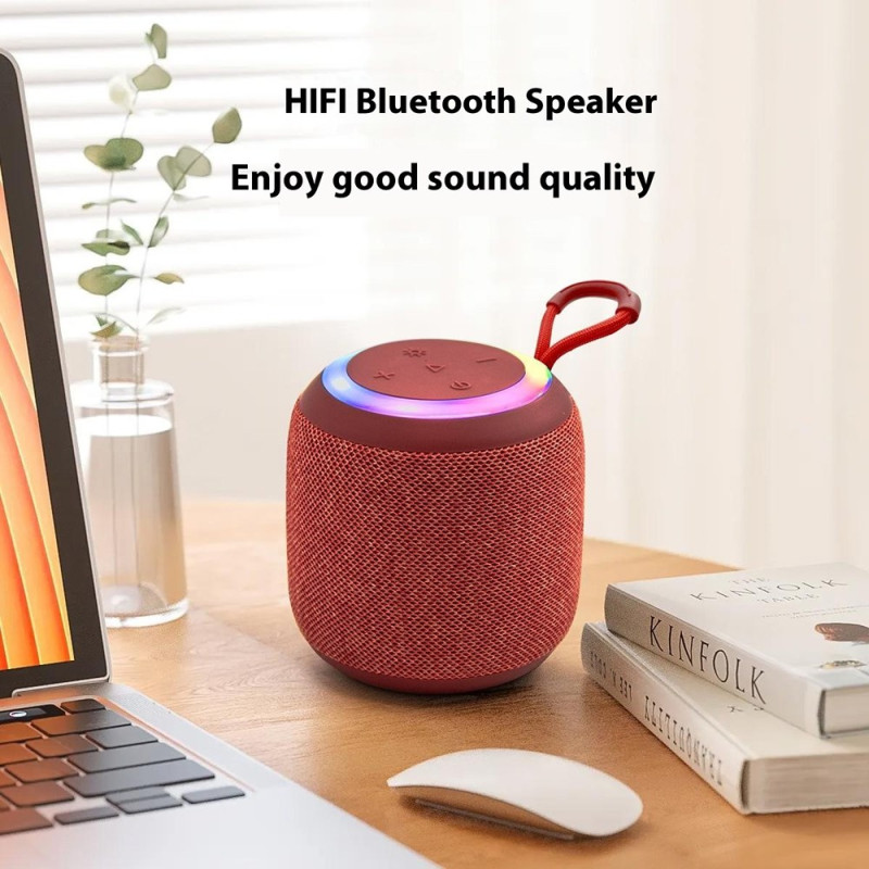 Este altifalante portátil oferece um formato compacto concebido para actividades ao ar livre, combinando leveza, resistência e versatilidade. A sua iluminação RGB sincronizada com a música cria uma atmosfera dinâmica, ideal para passeios desportivos ou momentos de relaxamento. A conetividade Bluetooth 5.1 assegura uma transmissão suave, complementada pelo suporte de cartões TF, rádio FM e modo USB. Graças à função TWS, é possível emparelhar dois altifalantes para um som estéreo envolvente. A sua bateria de 500 mAh garante até dez horas de iluminação ou 75 minutos de reprodução no volume máximo.