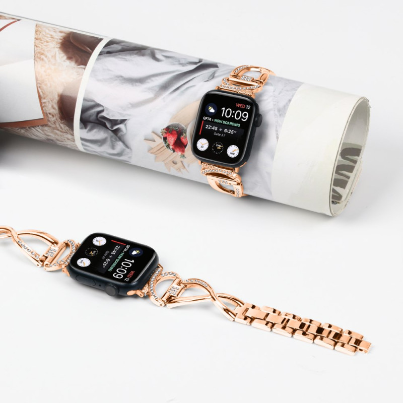Adornada com strass brilhantes e com um design exclusivo em X, esta pulseira em liga metálica combina conforto e estilo.