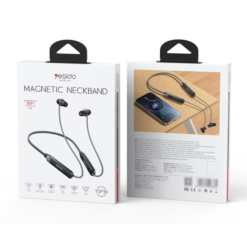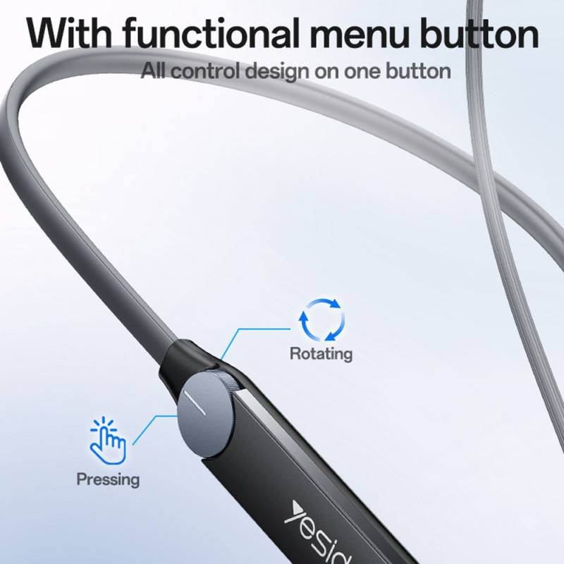 Os auriculares com banda para o pescoço YESIDO YSP30 apresentam um design leve e ergonómico de uma só peça para uma utilização confortável e duradoura. A conetividade Bluetooth 5.4, combinada com o chip AB5656D de baixo consumo de energia, garante uma ligação estável e eficiente em termos energéticos. Os drivers banhados a ouro de 13 mm proporcionam um som envolvente e preciso. O botão rotativo permite um controlo intuitivo do volume e da reprodução. A bateria de 350 mAh oferece mais de trinta e cinco horas de autonomia, ideal para profissionais e viajantes.