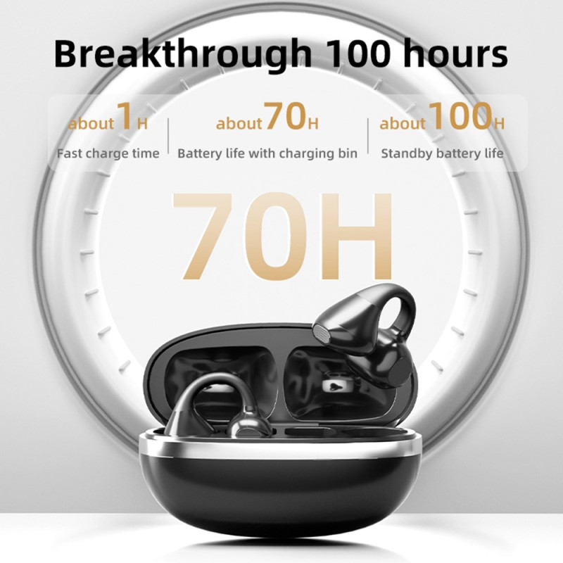 Estes auriculares com clipe para as orelhas M88 oferecem uma ligação Bluetooth 5.4 estável e suave, o que os torna ideais para viagens e sessões desportivas. O seu design aberto e não intrusivo é ideal para utilizadores que procuram um ajuste confortável sem inserção no canal auditivo. Os codecs AAC e mSBC garantem uma reprodução de som nítida, tanto para música como para chamadas. A autonomia da bateria é de cerca de cinco horas, prolongada por uma capa de carregamento de 300 mAh. A sua certificação IPX4 protege contra o suor e os salpicos para uma utilização quotidiana versátil.