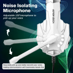 Os auriculares para jogos KOTION oferecem uma atmosfera de jogo melhorada graças aos seus efeitos de iluminação LED e áudio de alta definição. Os seus controladores de 40 mm proporcionam graves profundos e agudos nítidos, garantindo uma imersão sonora duradoura. As almofadas em pele proteica com espuma viscoelástica garantem um conforto ótimo durante longas sessões. O microfone incorporado assegura uma comunicação clara. Compatível com PCs, consolas e telemóveis através de uma ficha de 3,5 mm, este modelo combina versatilidade e robustez, apoiado por um cabo entrançado de 1,9 m.