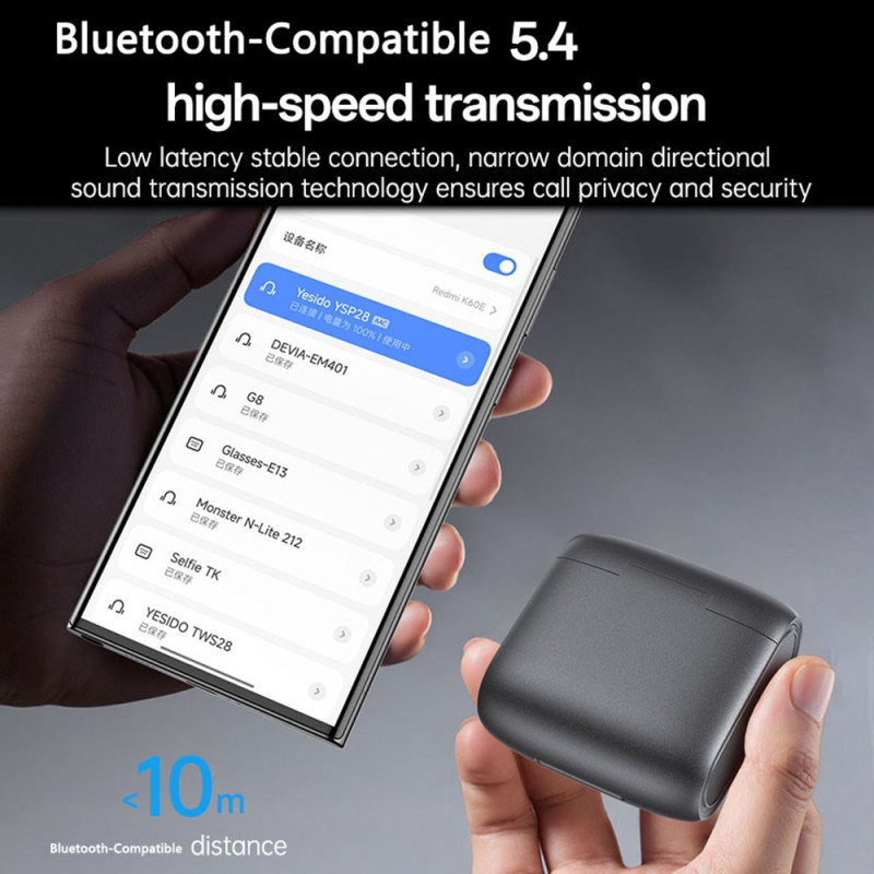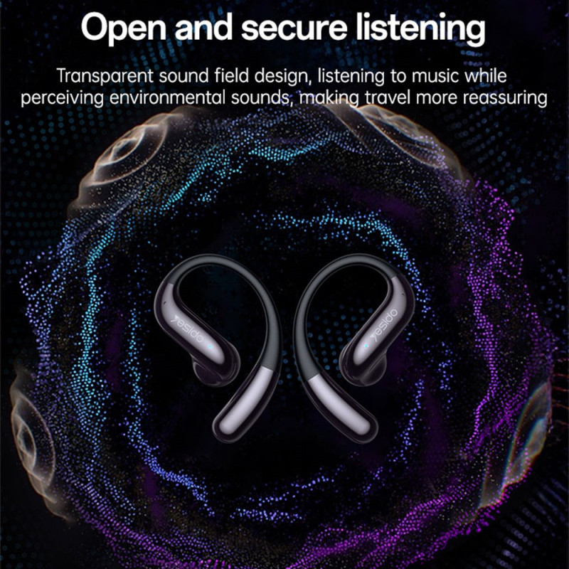 Os auriculares YESIDO YSP28 apresentam um design aberto que combina a utilização profissional e desportiva, oferecendo uma audição confortável sem inserção no ouvido. A redução de ruído ENC, proporcionada por um microfone único, garante chamadas mais claras ao limitar os sons circundantes. O controlador de diafragma de titânio de 12 mm proporciona um som HiFi preciso. Os ganchos com memória de forma adaptam-se naturalmente à forma do corpo do utilizador. A autonomia da bateria é de até seis horas, complementada por uma capa de carregamento de 450 mAh, enquanto o acabamento topo de gama aumenta a durabilidade e a estética do produto.