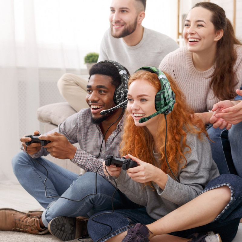 Os auriculares para jogos KOTION EACH G9000 Pro possuem uma iluminação LED dinâmica que melhora a imersão e dá um toque visual atraente ao espaço de jogo. Os seus controladores de 40 mm que cobrem uma gama de 20 a 20.000 Hz proporcionam um som potente, ideal para jogos, filmes e conteúdos multimédia. O design circum-aural, combinado com almofadas em pele proteica e espuma viscoelástica, garante um conforto duradouro. Compatível com PCs, consolas e telemóveis através de uma ficha de 3,5 mm, inclui um microfone nítido e um cabo entrançado robusto concebido para resistir a uma utilização intensiva.