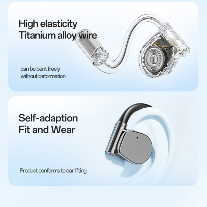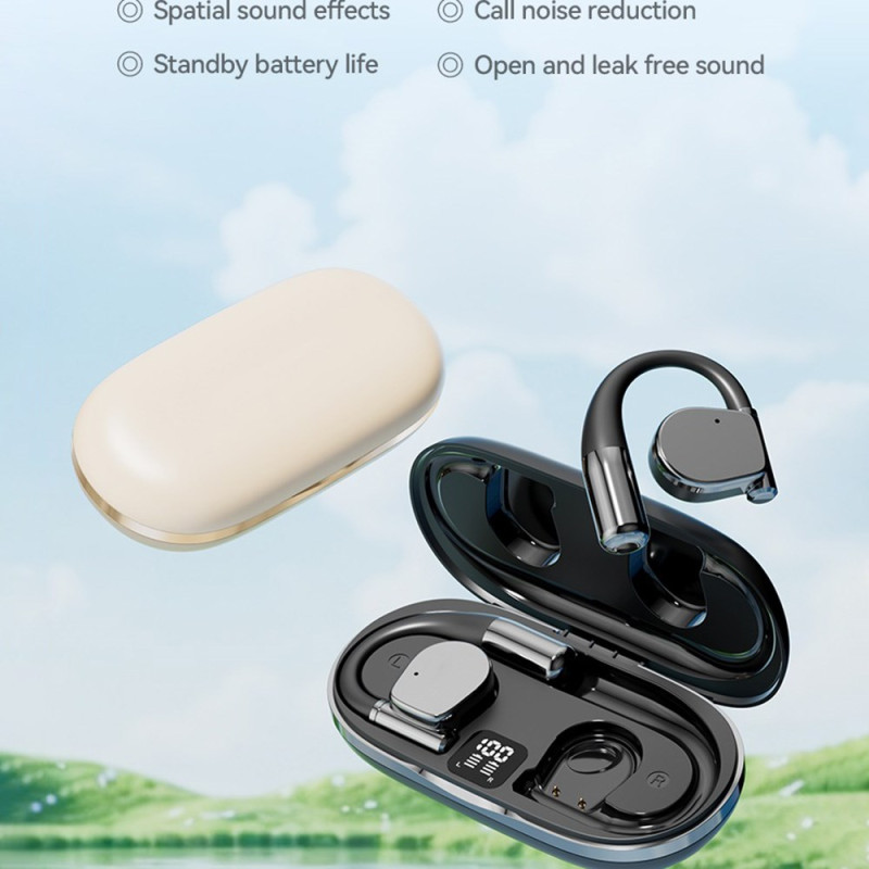 Estes auriculares de condução aberta oferecem uma ligação Bluetooth 5.4 estável e de baixo custo para utilização diária ou desportiva. O seu design de ouvido aberto permite-lhe estar atento ao que o rodeia enquanto desfruta de um som nítido fornecido por diafragmas de 16 mm com anéis de cobre. O visor digital integrado mostra o nível exato da bateria para uma gestão fácil. Os auriculares de 50 mAh e a capa de 500 mAh prolongam a vida útil da bateria, tornando-os ideais para uma utilização prolongada. O seu design ergonómico garante um ajuste seguro e confortável.