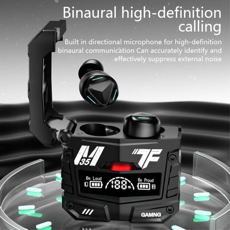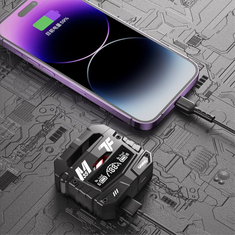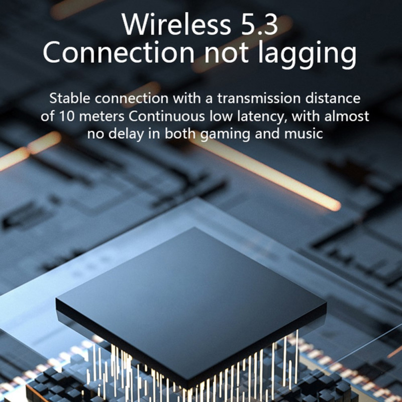 Estes auriculares sem fios combinam um som panorâmico de 360° com um ajuste preciso das três frequências para proporcionar uma experiência de audição equilibrada, com agudos brilhantes, médios claros e graves ricos. O seu chip Bluetooth 5.3 garante uma ligação estável, baixa latência e um alcance de até 10 metros, ideal para jogos e vídeo. O visor digital LED permite verificar facilmente o nível da bateria dos auriculares e da caixa. A estrutura resistente à água suporta a utilização desportiva diária. A capa de alta capacidade também funciona como uma bateria externa para recarregar um telemóvel, garantindo uma autonomia confortável em movimento.