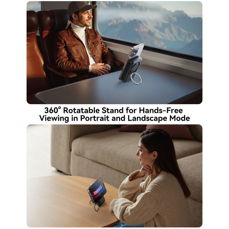Concebida para fornecer uma solução de alimentação segura e integrada, esta Bateria Externa 3 em 1 JOYROOM redefine a comodidade em movimento. Com a sua capacidade de 10000mAh, proporciona quase duas recargas completas para os modelos topo de gama. Fornece 22,5 W de potência de carregamento super-rápido, através da sua porta Tipo C ou do cabo integrado, e suporta o carregamento sem fios de 15 W. A sua fixação magnética de 13N garante uma ligação estável. O suporte de anel rotativo de 360° facilita o transporte e a visualização com as mãos livres. Este modelo incorpora 9 camadas de proteção e está em conformidade com os requisitos da aviação para um transporte seguro.