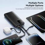 A autonomia absoluta e a organização sem falhas estão reunidas nesta bateria externa ESSAGER 20000mAh. Esta unidade de alta capacidade garante múltiplas recargas para todos os seus dispositivos, sem o incómodo de cabos externos, graças aos seus dois cabos integrados (Type-C e Lightning). Oferece uma potência de carregamento ultra-rápida de até 22,5 W, assegurando um fornecimento de energia eficiente através da porta USB-A e do cabo Tipo C. A sua configuração versátil permite-lhe carregar até quatro dispositivos em simultâneo. O ecrã LED inteligente mostra o nível de bateria restante em tempo real e o dispositivo tem certificação CE e RoHS para o mercado europeu.