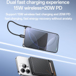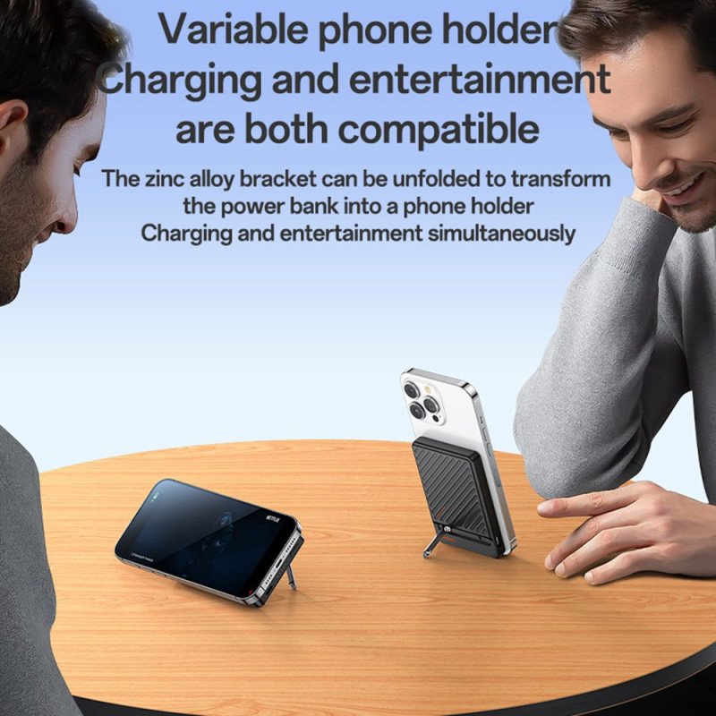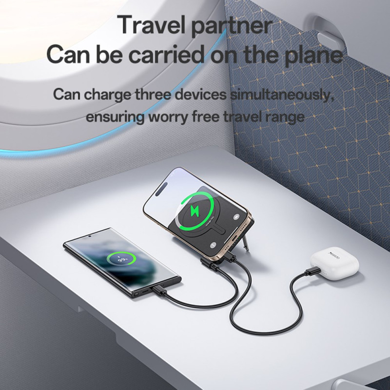 A eliminação total da ansiedade de carregamento é assegurada por esta solução de alimentação 3 em 1, que integra cabos, sem fios e suporte. Esta bateria externa de 10000mAh oferece 15W de potência magnética sem fios e 20W de carregamento rápido com fios. Incorpora um cabo Tipo C para um recarregamento imediato e sem confusão, e o seu suporte retrátil permite uma visualização sem mãos. A segurança é uma prioridade: o dispositivo beneficia de um sistema único de proteção dupla contra o sobreaquecimento e PCBA, garantindo uma utilização fiável em conformidade com as normas europeias.