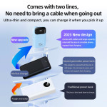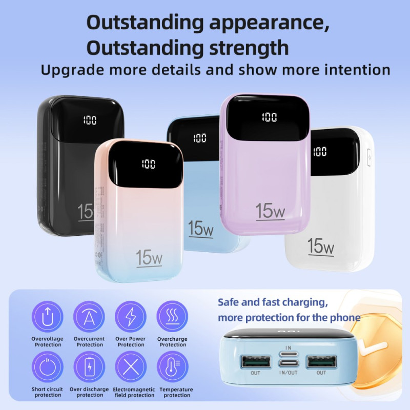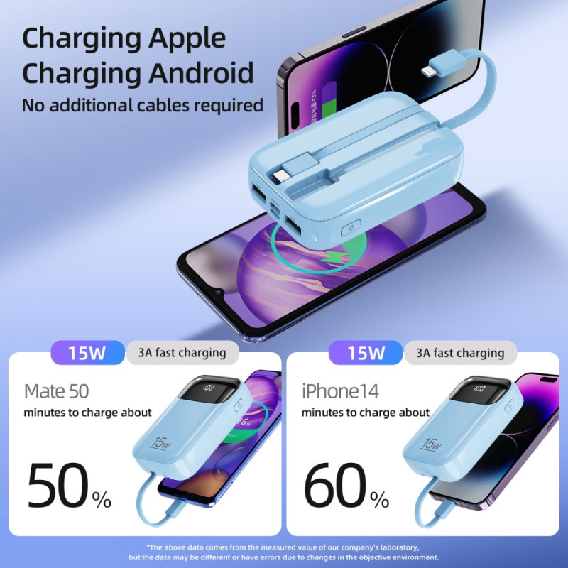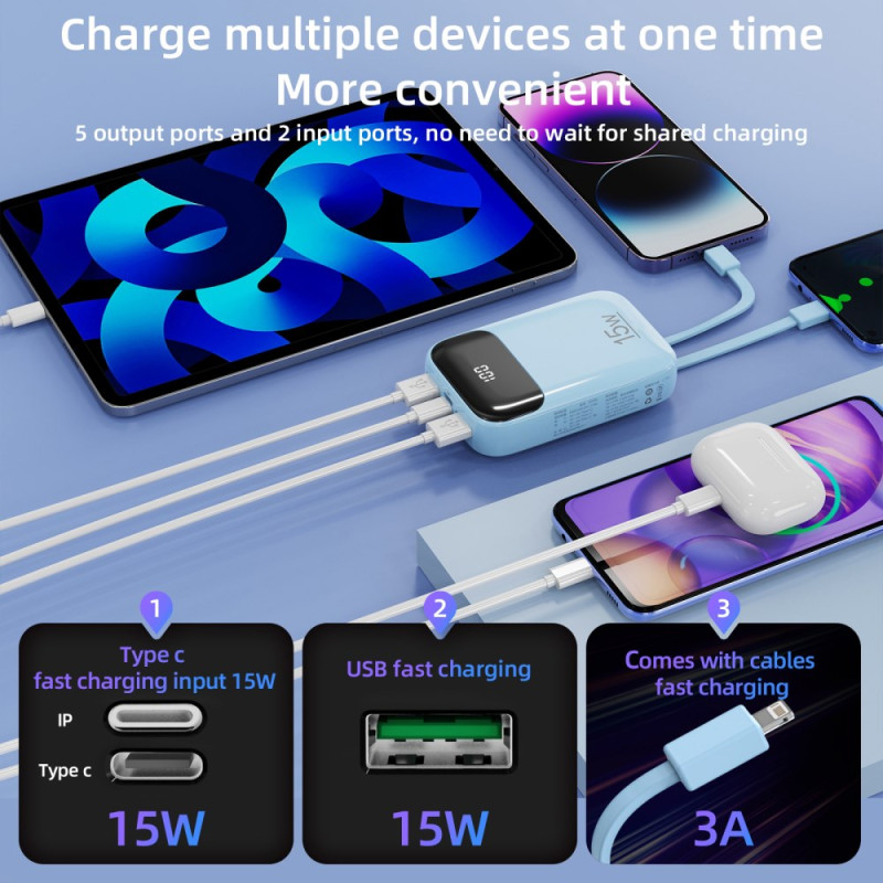 A dependência de cabos externos é eliminada com esta Bateria Externa ROISKIN, concebida para uma autonomia e eficiência partilhadas. A sua capacidade colossal de 20.000mAh garante energia para vários dispositivos durante dias a fio. O seu design integra cabos Type-C e Lightning (iP), oferecendo compatibilidade imediata com todos os ecossistemas. Com cinco saídas disponíveis (portas e cabos), esta unidade permite carregar um grande número de dispositivos em simultâneo. A sua construção em PC oferece um toque agradável e a sua proteção inteligente garante uma utilização fiável. O aparelho possui a certificação CE-RoHS, o que confirma a sua conformidade com as normas europeias.