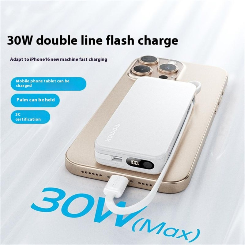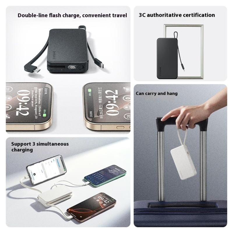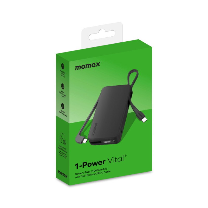 A concentração de potência PD 30W e a eliminação de cabos externos definem o novo padrão para o carregamento móvel profissional. Esta Bateria Externa MOMAX 1-Power Vital+ 10000mAh foi concebida para uma eficiência máxima. Incorpora dois cabos USB-C, garantindo uma solução de carregamento completa e sem confusão. A sua potência de saída de 30 W permite-lhe carregar rapidamente dispositivos exigentes como o iPad Pro ou smartphones topo de gama. Com três saídas disponíveis, pode alimentar vários dispositivos em simultâneo. O ecrã digital proporciona uma monitorização precisa do nível da bateria.
