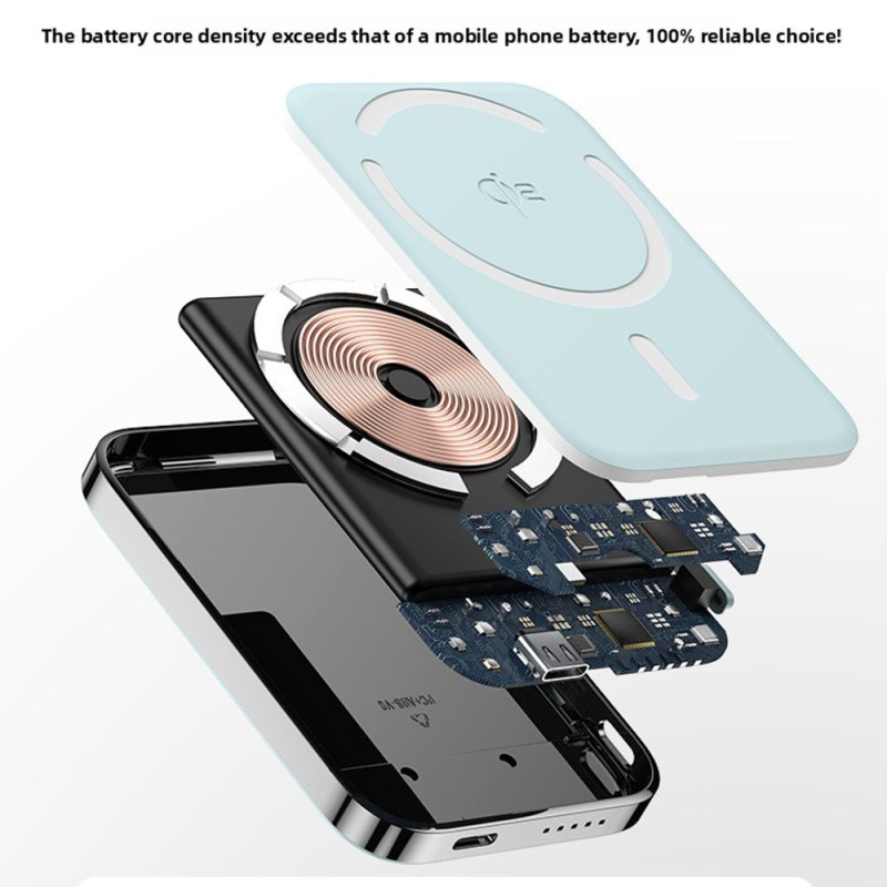 Esta bateria magnética externa utiliza a tecnologia Qi2 para proporcionar um carregamento sem fios rápido e estável de até 15 W. O seu design fino torna-a confortável de segurar, o que a torna ideal para utilização em movimento sem ocupar muito espaço. Graças à sua capacidade de 10 000 mAh, pode ser recarregado várias vezes e pode ser utilizado em modo sem fios ou com fios de 20 W para satisfazer diferentes necessidades. O potente íman garante que fica bem preso ao telemóvel, mesmo quando este está em movimento, para uma experiência prática e segura.
