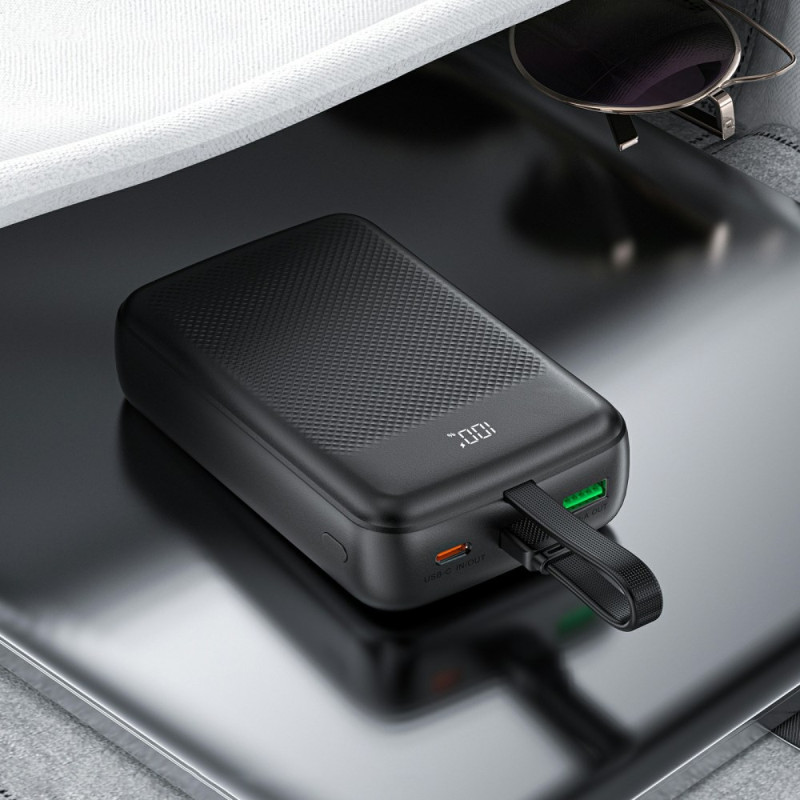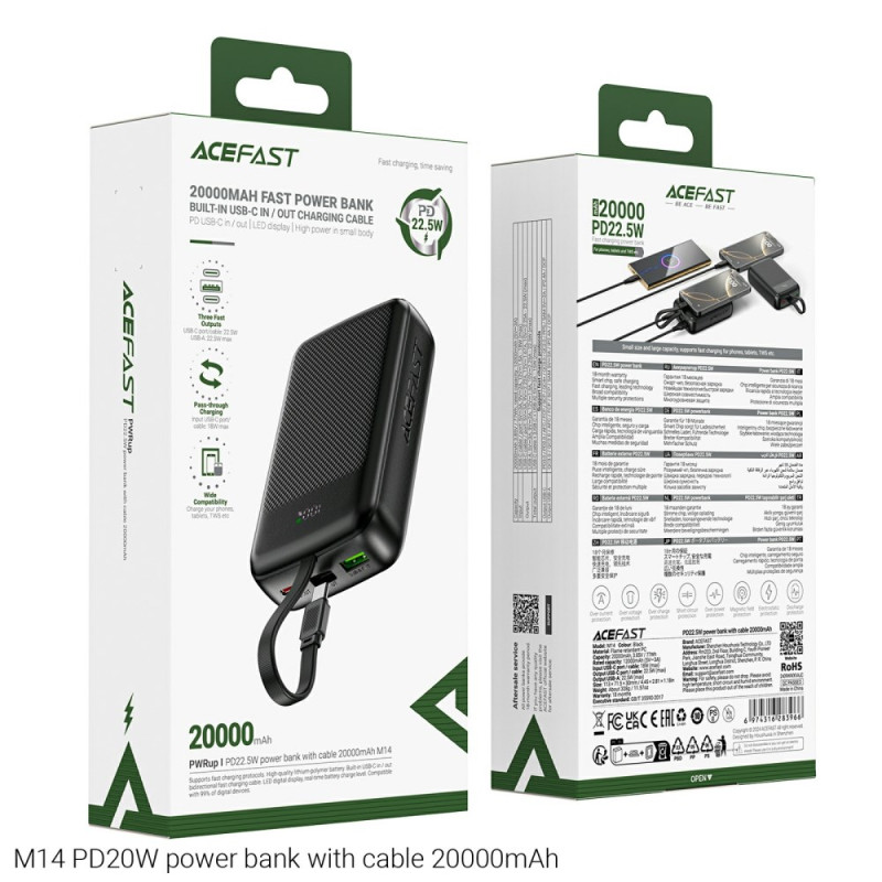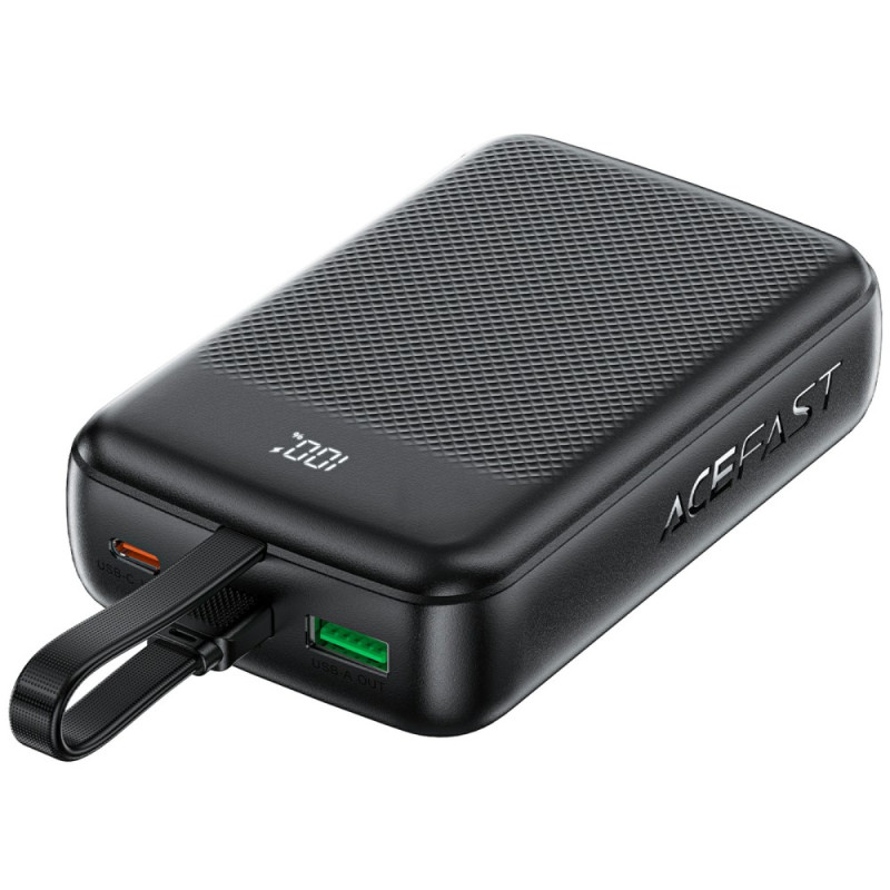 Esta bateria externa ACEFAST 20000mAh oferece uma autonomia generosa, capaz de recarregar vários dispositivos quando se está em movimento durante longos períodos. A sua compatibilidade com o carregamento rápido de 22,5 W via USB-C e USB-A garante uma alimentação eficiente para muitos smartphones e acessórios. O cabo tipo C integrado simplifica a utilização, eliminando a necessidade de transportar cabos adicionais. O seu ecrã digital mostra o nível de energia exato e o seu design em PC ignífugo, combinado com células de cobalto, garante uma maior segurança. Certificada para o transporte aéreo, é perfeita para os viajantes.