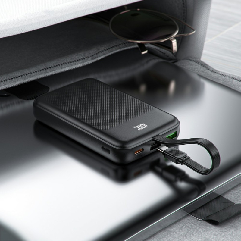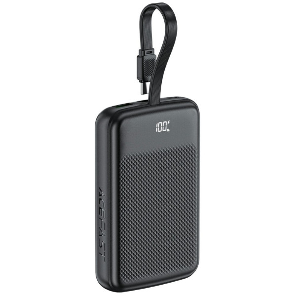 Esta bateria externa ACEFAST 10000mAh oferece uma autonomia confortável, garantindo um carregamento rápido graças à tecnologia PD 22,5W compatível com vários protocolos. O seu cabo Type-C integrado simplifica a utilização, eliminando a necessidade de transportar um cabo adicional. O visor digital mostra o nível exato da bateria para uma gestão cómoda. Compacto e leve, é fácil de transportar. O seu design em PC ignífugo e as células de cobalto garantem uma maior segurança e conformidade com as normas de transporte aéreo.