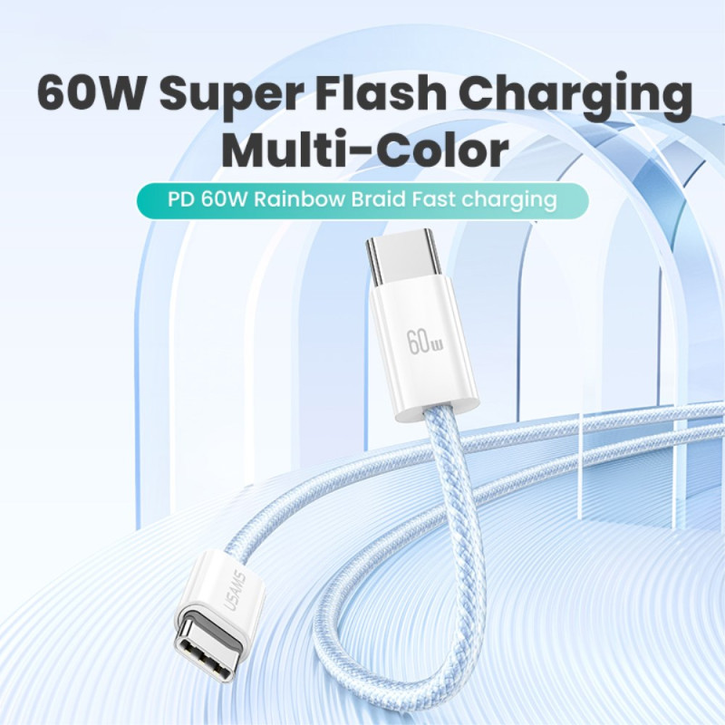 Descubra este cabo de carregamento rápido Usams Type-C para Type-C de 1,2 m, que oferece um carregamento de alta potência sem sobreaquecimento e uma função dupla de carregamento e transmissão de dados.