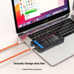 Descubra o nosso inovador cabo de carregamento com alça de mão integrada. Este acessório 2 em 1 combina praticidade e desempenho, oferecendo um carregamento rápido de 27 W e uma ligação Tipo C à porta L.