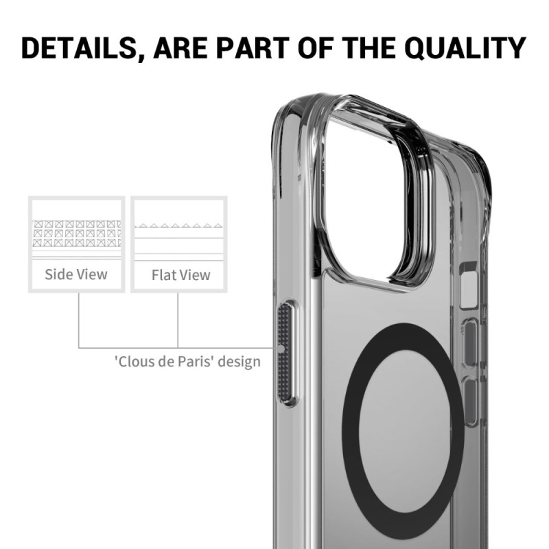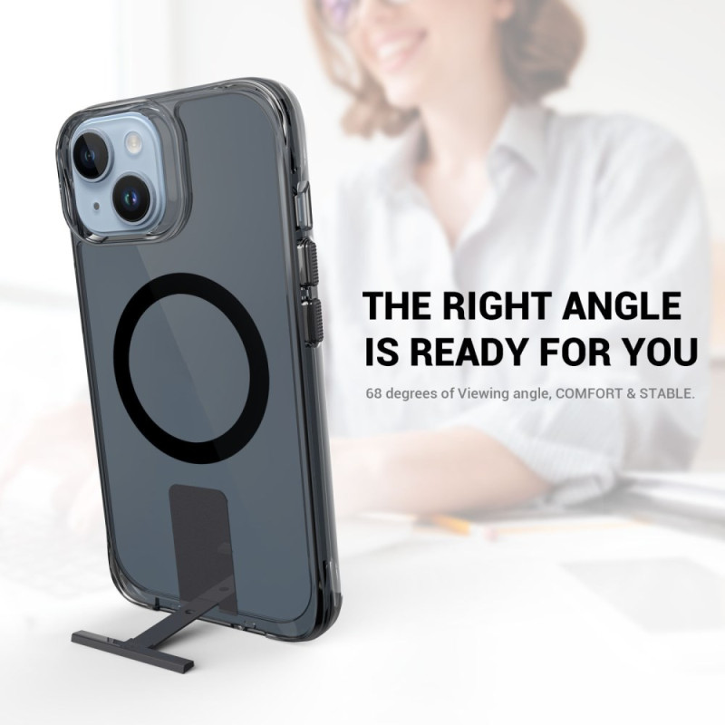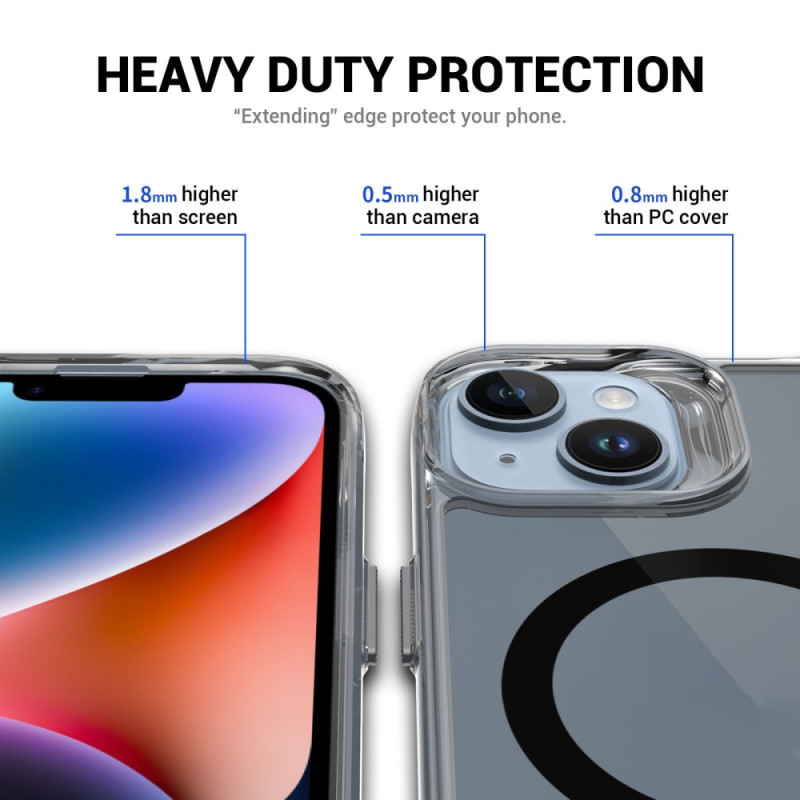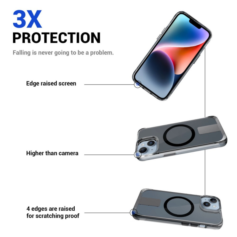 Descubra a nossa capa transparente compatível com MagSafe para iPhone 15 Plus / 14 Plus. Fabricada em TPU e PC, oferece proteção anti-queda e anti-choque, preservando a estética do seu telefone. O seu suporte em liga de alumínio integrado permite uma visualização sem mãos em qualquer orientação. As extremidades elevadas protegem o ecrã e a protecção para lente da câmara.