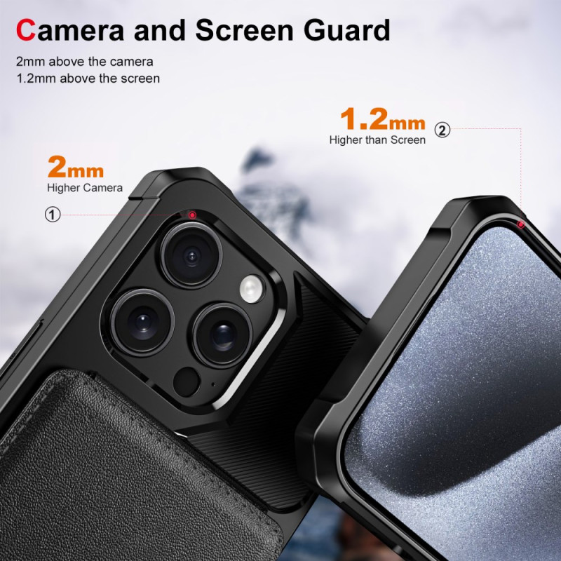 Capa multifunções para iPhone 13 Pro que combina proteção e praticidade. Comporta até 4 cartões graças às ranhuras integradas e transforma-se num suporte mãos-livres para uma visualização confortável. Proteção reforçada contra choques e riscos.