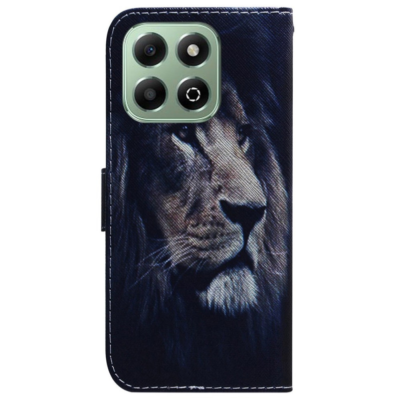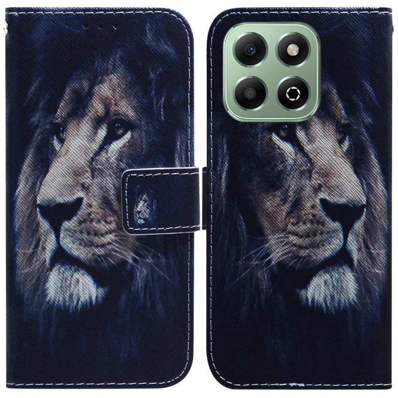 Capa elegante com motivo de leão para o Honor X6b 4G. Design em pele com suporte para cartões integrado, suporte rebatível e fecho magnético seguro. Proteção completa contra choques e riscos, mantendo os seus cartões sempre à mão.