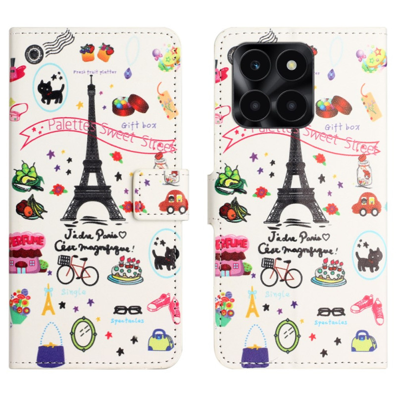 Descubra a elegância parisiense com esta capa para carteira com motivos da Torre Eiffel. Combinando estilo e funcionalidade, protege o Honor X6c 4G / X6b 4G / X6a 4G, oferecendo ranhuras para cartões, um fecho magnético seguro e um suporte integrado para visualizar o seu conteúdo em total liberdade.