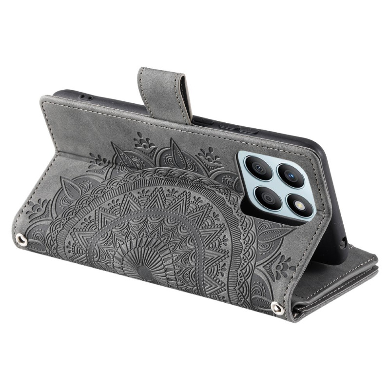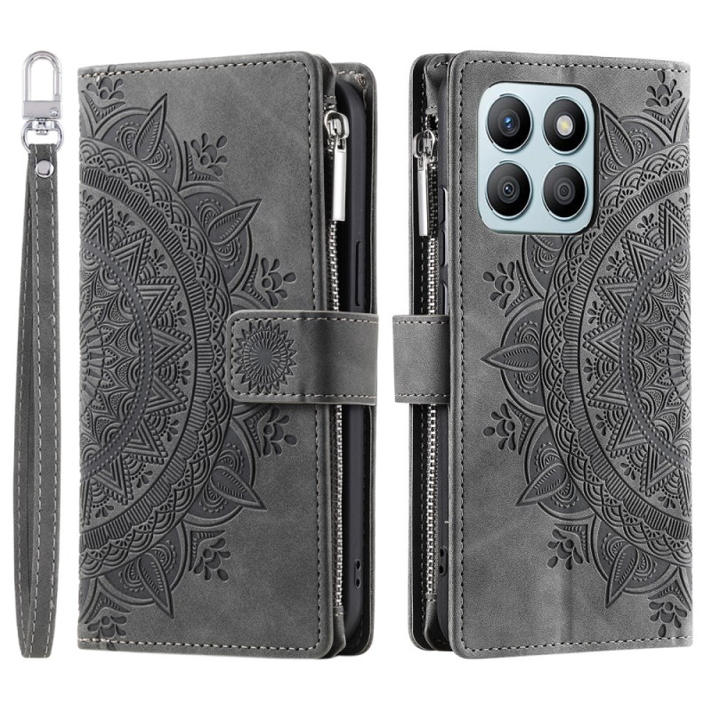 Elegante capa tipo carteira para o Honor X6b 4G com um sofisticado motivo mandala. Combina estilo e funcionalidade com vários compartimentos para cartões e dinheiro, um fecho magnético seguro e suporte mãos-livres integrado.