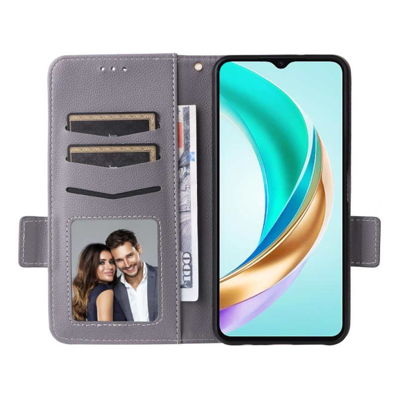 Proteja o seu Honor X6b 4G com estilo com esta capa para carteira em pele PU com textura de lichia. Com várias ranhuras para cartões, suporte mãos-livres e um fecho magnético seguro, combina praticidade e estilo para uma utilização quotidiana.