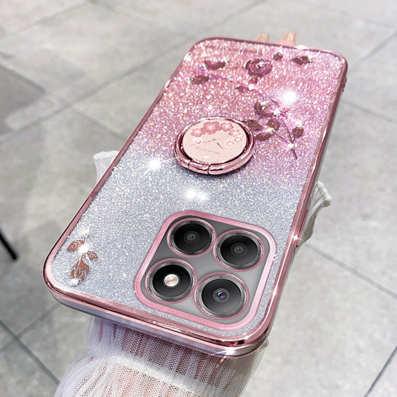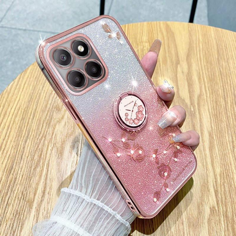 Proteja o seu Honor X6b 4G com estilo com esta capa KADEM adornada com flores eternas e strass brilhantes. O seu anel rotativo integrado permite uma visualização em mãos livres e uma aderência segura, combinando estilo e funcionalidade.