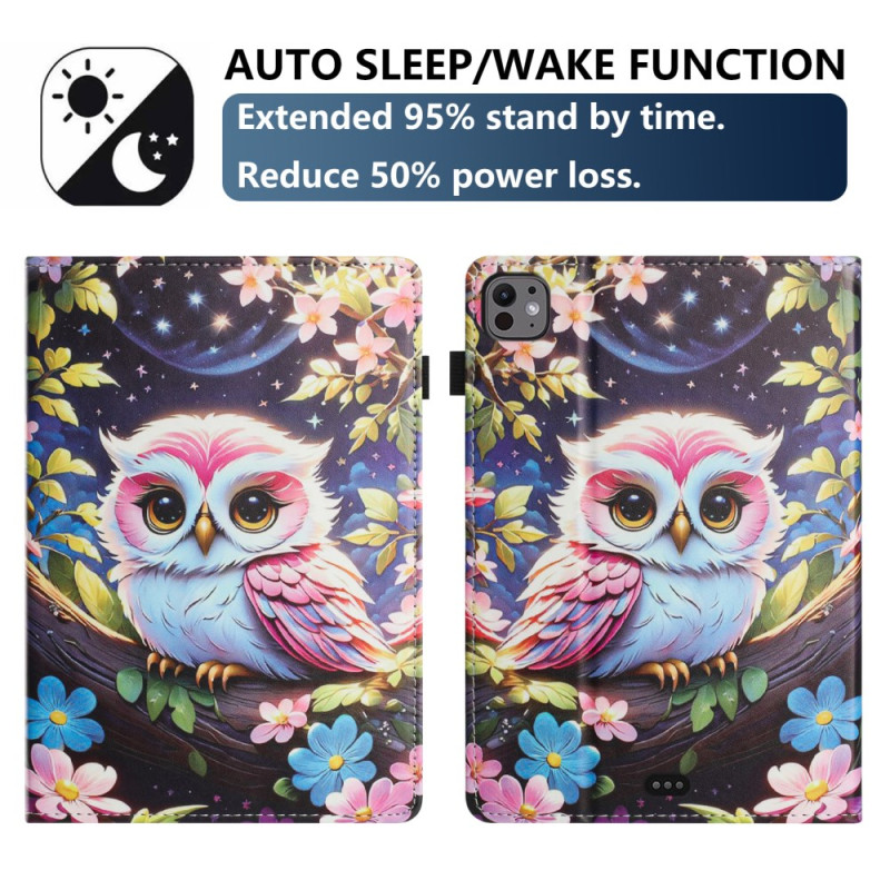 Descubra a nossa elegante capa para iPad Pro 11 (2025) / 11 (2024). Fabricada em pele PU texturada de alta qualidade, oferece uma proteção duradoura e um estilo único com o seu motivo de coruja impresso. Tire partido do suporte multi-ângulo, da função de suspensão/despertar automática, das ranhuras para cartões e do suporte para caneta integrado para a melhor experiência de utilização.