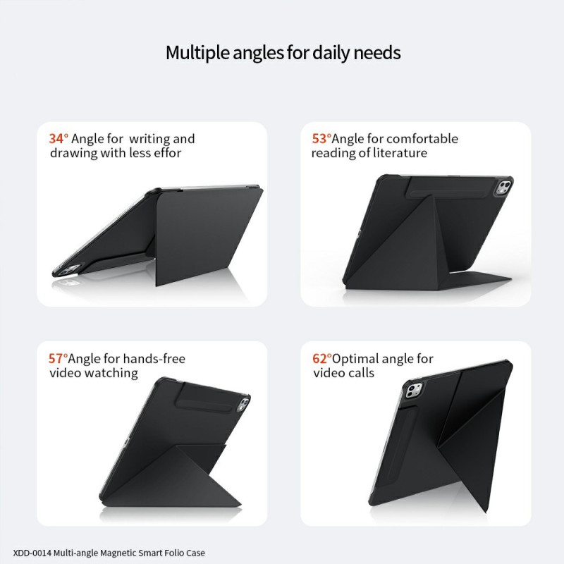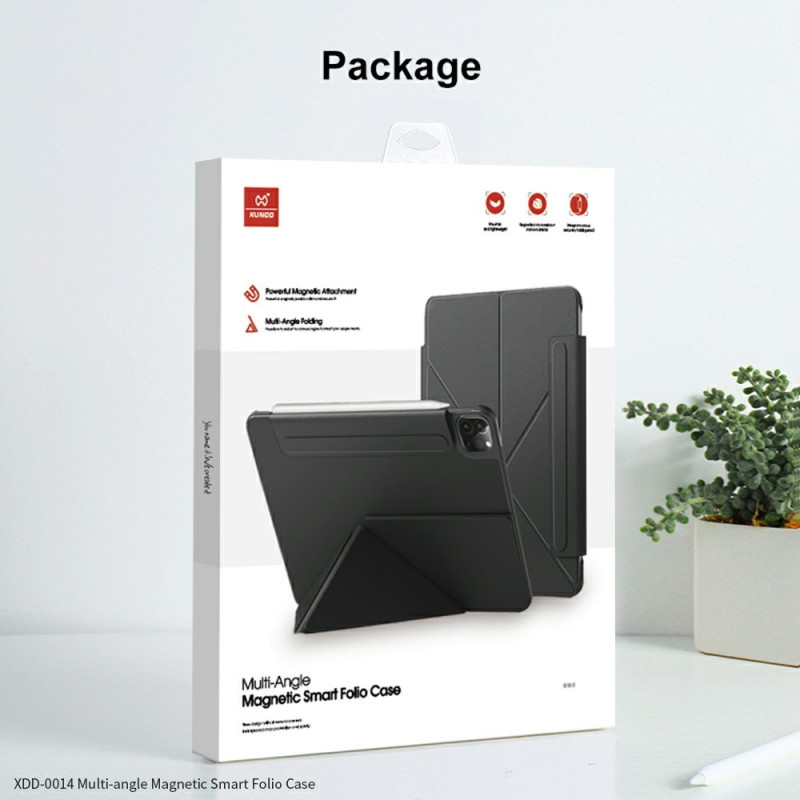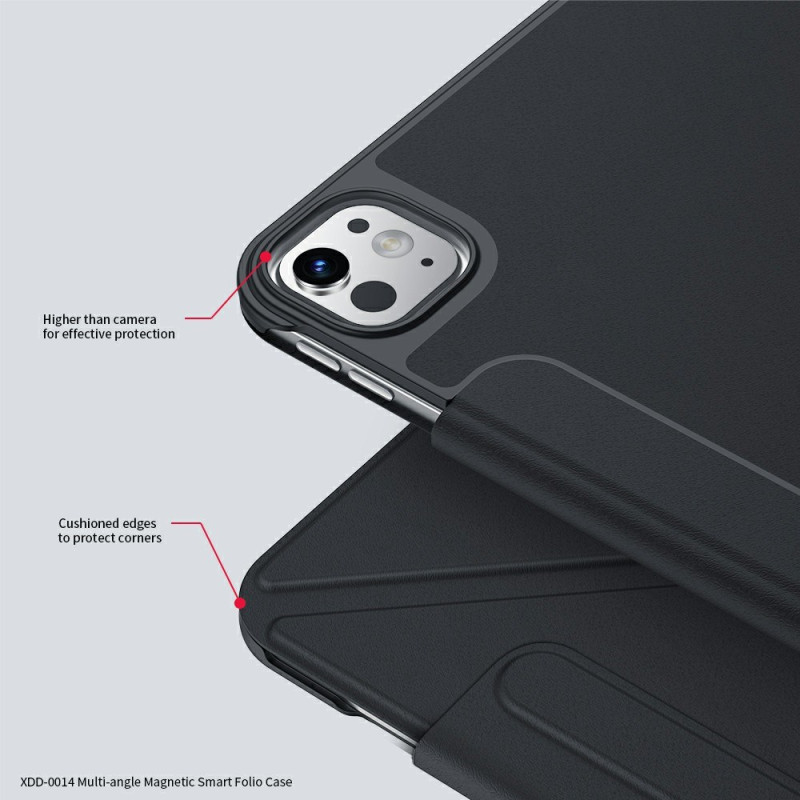 Esta capa em pele PU para iPad Pro 11 (2025) / 11 (2024) oferece uma proteção duradoura e multifuncional. Com o seu suporte multi-ângulo, função de espera automática e suporte para caneta integrado, combina praticidade e estilo para uma utilização óptima do seu tablet.