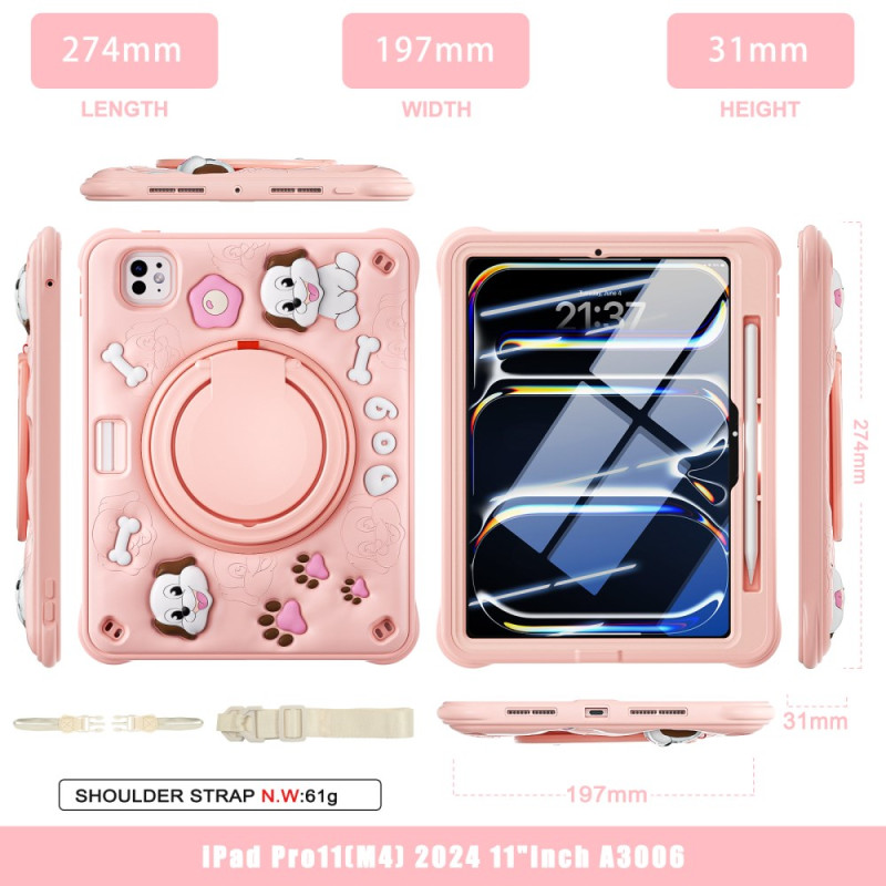 Descubra a nossa adorável e funcional capa para iPad Pro 11 (2025) / 11 (2024). Com o seu bonito motivo de cão, suporte integrado e alça de ombro, combina estilo e praticidade. A proteção multicamada e os cantos reforçados garantem uma segurança óptima para o seu tablet. Ideal para crianças e adultos, esta capa versátil acompanha-o para todo o lado.