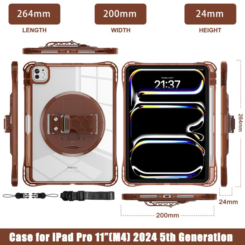 Descubra a nossa inovadora capa para iPad Pro 11 (2025) / 11 (2024), que oferece uma proteção completa e uma versatilidade inigualável. Com a sua alça de mão rotativa a 360°, suporte retrátil e alça de ombro ajustável, esta capa combina funcionalidade e facilidade de utilização. O seu design robusto em PC, TPU e acrílico garante uma proteção óptima contra impactos e desgaste diário. Quer esteja a trabalhar, a ver vídeos ou a navegar na Internet, esta capa adapta-se ao seu estilo de vida ativo, proporcionando uma proteção eficaz para o seu iPad Pro 11.