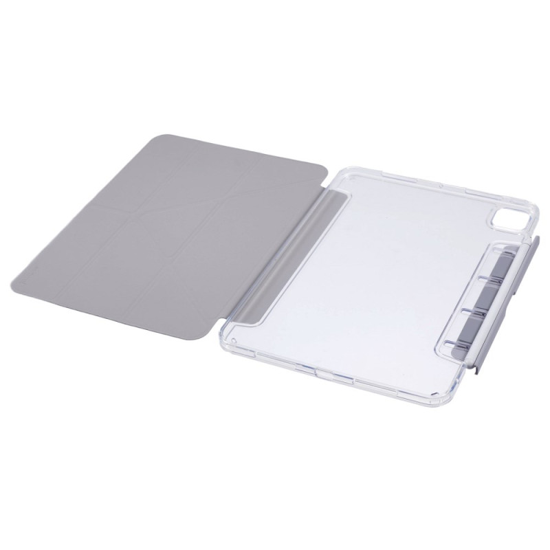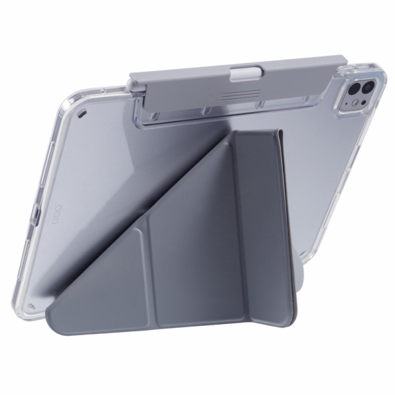 Descubra a nossa capa topo de gama para iPad Pro 11 (2025) / 11 (2024). Fabricada em pele PU de alta qualidade com uma parte traseira transparente, oferece uma proteção robusta enquanto exibe o seu tablet da melhor forma. Desfrute de funcionalidades práticas, como o suporte para origami, o suporte para caneta retrátil e a função de suspensão automática.