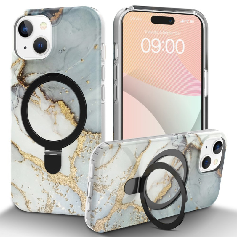 Descubra a nossa elegante capa magnética para iPhone 15. Fabricada em PC e TPU, combina durabilidade e flexibilidade. Com um prático suporte em forma de anel, oferece uma aderência confortável e uma função de suporte. Compatível com o carregamento MagSafe, esta capa protege o seu dispositivo contra quedas e riscos.