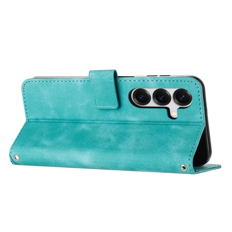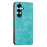 Étui élégant en cuir synthétique avec motif triangle imprimé pour Samsung Galaxy S26. Dispose de 3 emplacements pour cartes, d'une fermeture magnétique sécurisée et d'une dragonne détachable pour un transport facile.