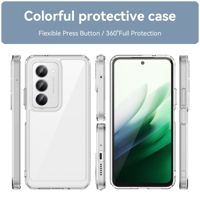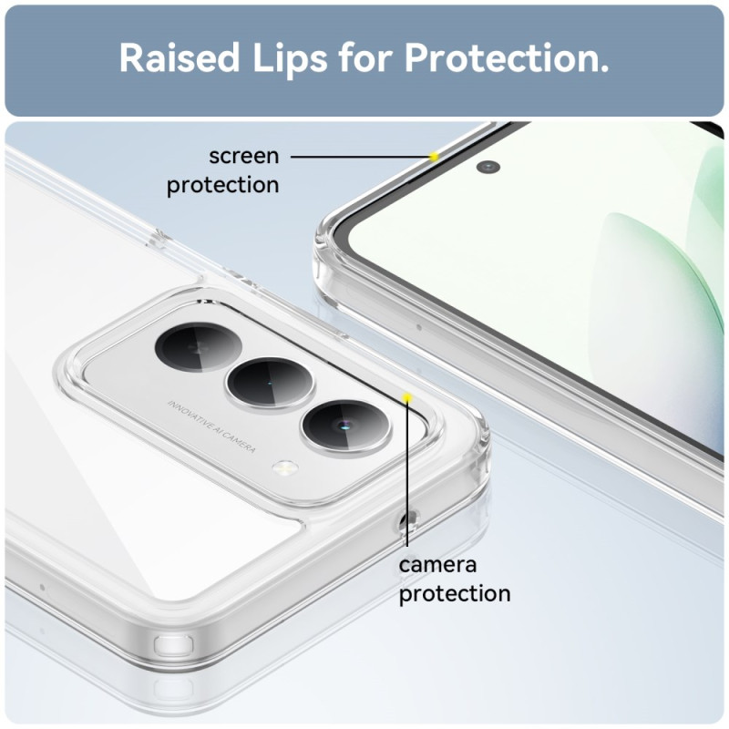 Descubra a nossa capa protetora robusta para o Xiaomi Redmi 15 5G / 4G. Com o seu design em TPU e acrílico transparente, oferece uma proteção completa contra choques e riscos. Os cantos reforçados, os rebordos elevados e a película de vidro temperado garantem a máxima segurança do seu dispositivo.