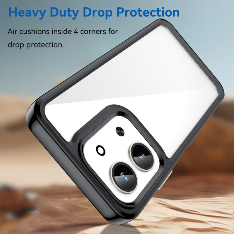 Descubra a nossa capa de proteção robusta para o Xiaomi Redmi 15C 5G / 4G. Concebida com almofadas de ar nos quatro cantos para uma proteção ideal contra quedas, esta capa combina durabilidade e estilo. As suas extremidades elevadas protegem o ecrã e a câmara, enquanto o seu design em TPU e acrílico oferece uma cobertura de 360 graus.