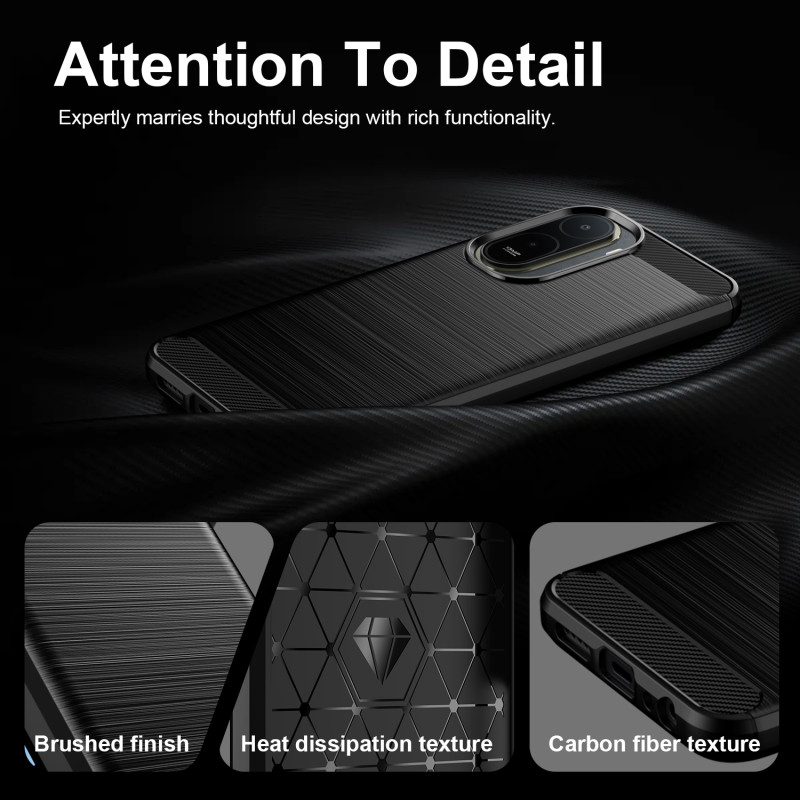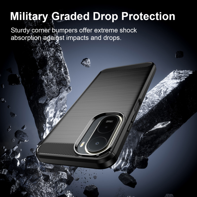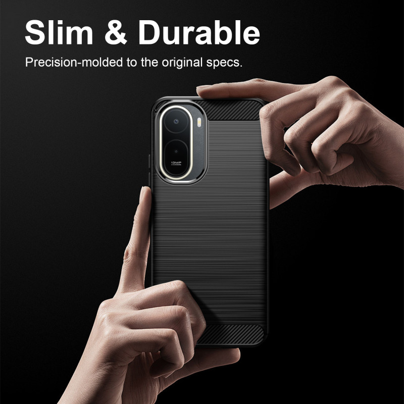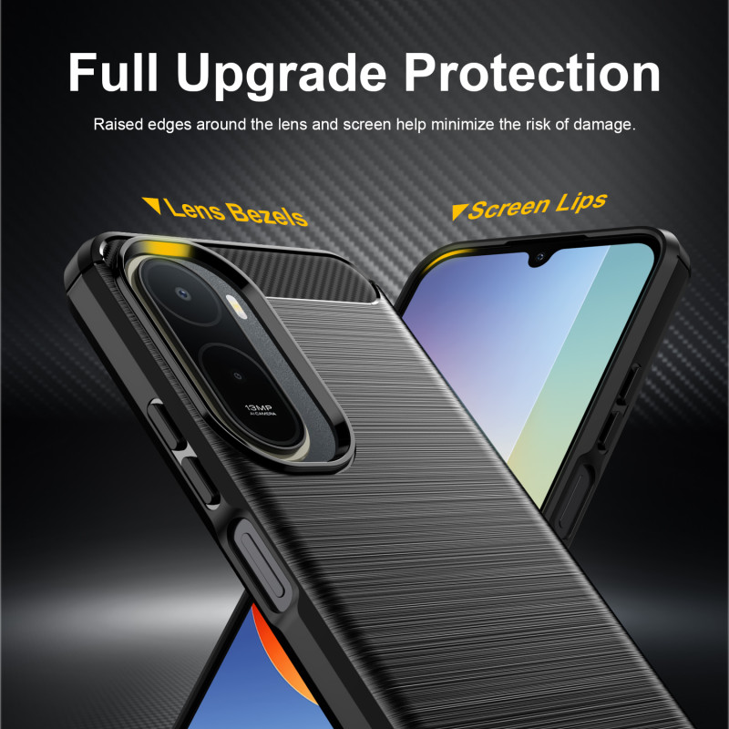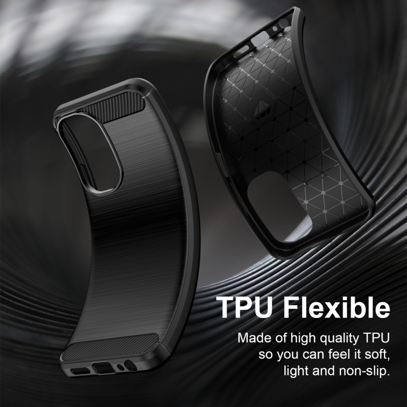 Esta capa para o Xiaomi Redmi A7 Pro 4G tem um aspeto desportivo com detalhes com efeito de carbono e uma textura escovada.